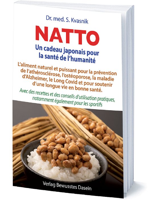 Le Dr Kvasnik se réjouit de pouvoir contribuer aujourd'hui, grâce à des conseils nutritionnels scientifiquement fondés et basés sur des preuves, à la prévention de maladies graves qu'il ne pouvait combattre, dans son ancienne vie, qu'à l'aide de médicaments ou d'un scalpel. Depuis 2000 ans, le natto est un aliment traditionnel japonais à base de fèves de soja fermentées, qui contient une enzyme appelée nattokinase ainsi que de nombreux autres composants et qui présente des effets prometteurs sur différents problèmes de santé. Malgré ces avantages, le natto n'est pas généralement considéré comme un médicament, car le natto est considéré comme un aliment et non comme un médicament.